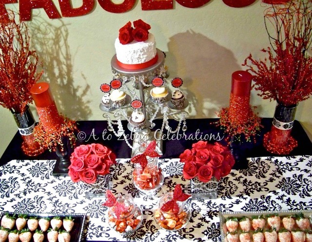 Well, I think you get the idea. We had our work cut out for us. We decided on a candy table with some of her favorite treats, pink lighting and white drapes to add a dramatic feel to the room. We also added damask and pink roses to soften the look. Pinterest was a great source for our browsing however, as she is also a pinterest lover, we had to be very strategic in where we put our pictures as to not give away our plan until after the event took place.